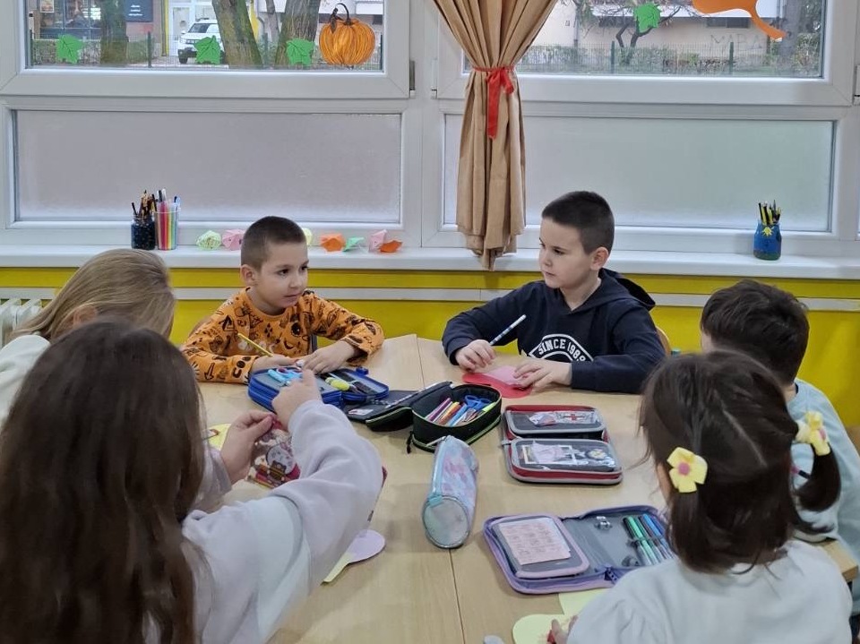 Ученици продуженог боравка су данас, заједно са учитељицом, реализовали креативну радионицу „Мала дјела, велика срца“. Радионица је започела разговором о доброти, примјерима добрих дјела и осјећањима која се јављају када некоме помогнемо или учинимо лијеп гест.