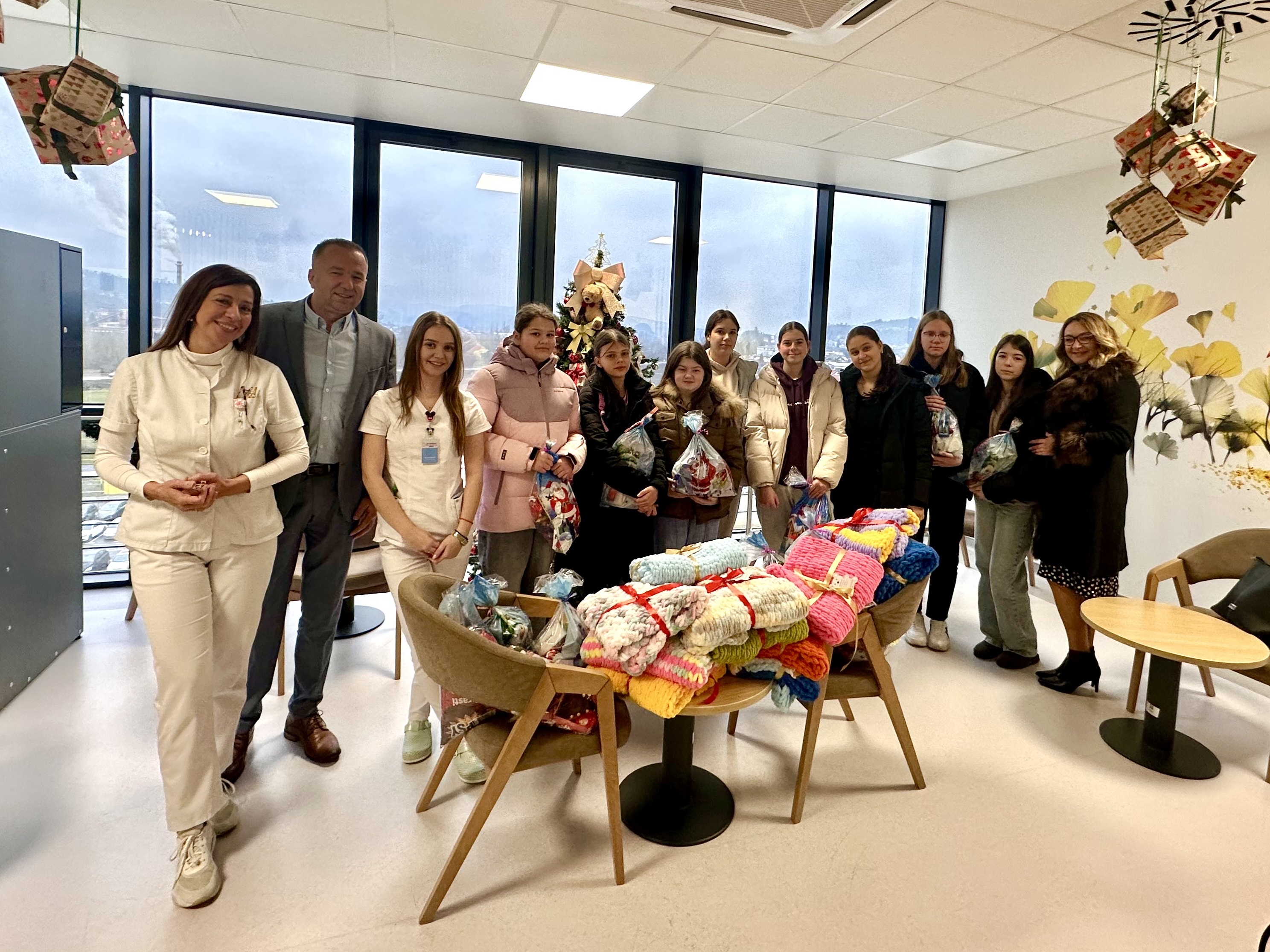 Данас су ученице наше школе заједно са наставницом Горданом Татић и директором школе господином Љубишом Благојевиће, посјетили Одјељење педијатрије ЈЗУ Болнице „Свети апостол Лука“ Добој и малишанима на лијечењу уручили пакетиће и мекане декице које су сами израдили.